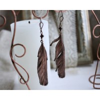 Feathers and Leaves, brooches, hair clips, earrings, neckleses and bracelets are made of real feathers and leaves, covered in copper using electriforming thecnic. This brings all details that they have and patina with polishing make them shine!