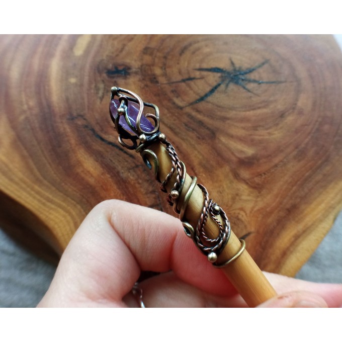 Materials: copper, wood, garnet, amethyst